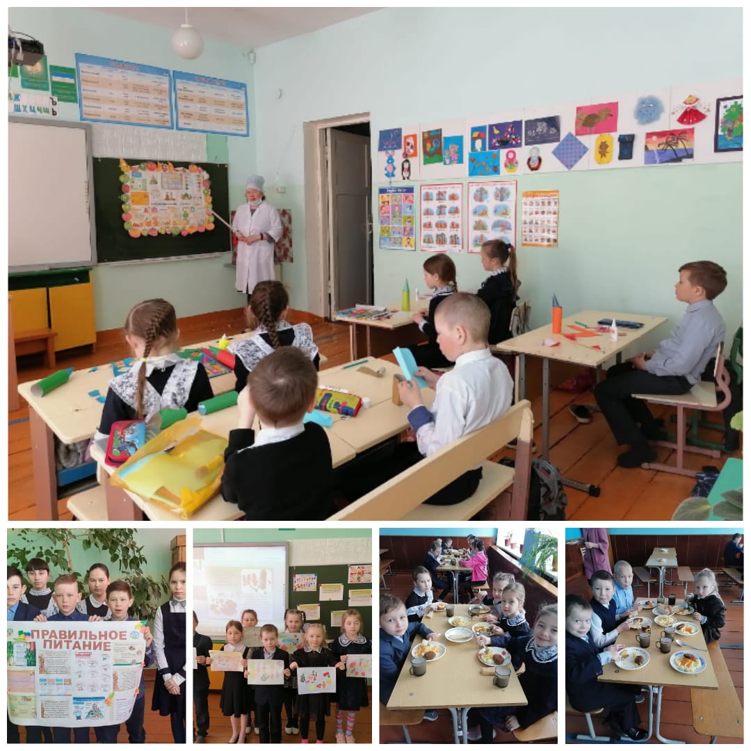 5 апреля в школе прошёл День здоровья. Фельдшер ФАП Тимиркаева Л П. провела беседу с обучающимися школы о правильном и здоровом питании. Проведен конкурс рисунков и газет "Витамины всем нужны", "Правильное питание"