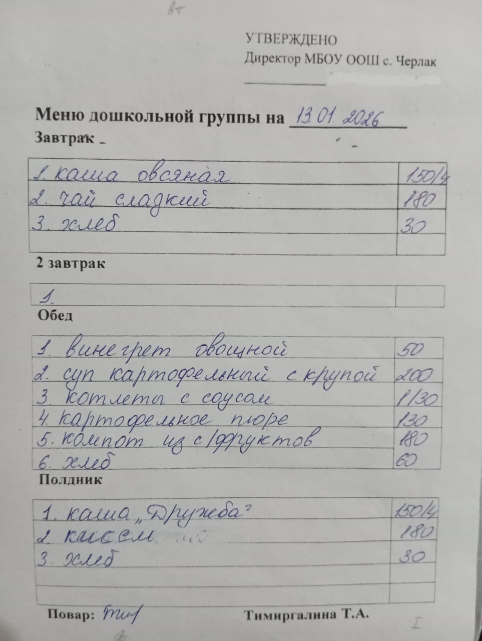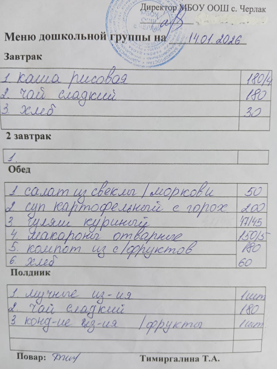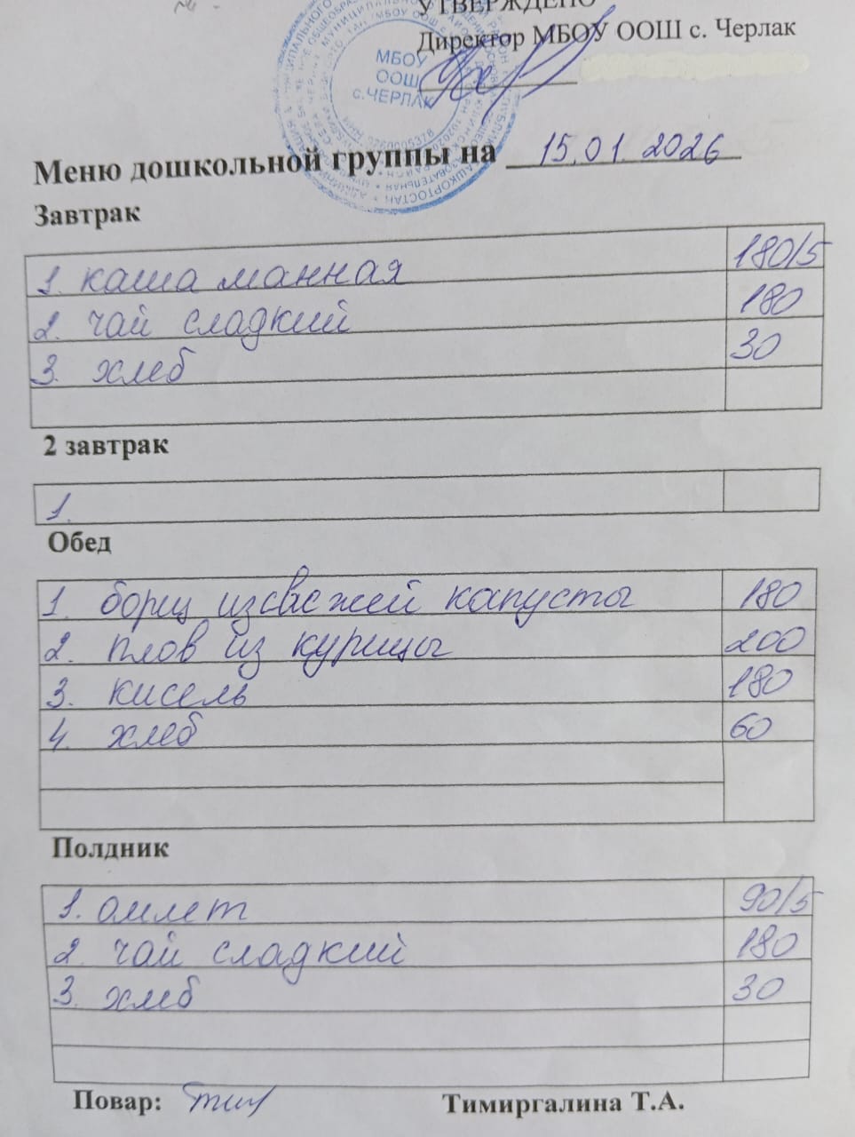 (детсад полдник)