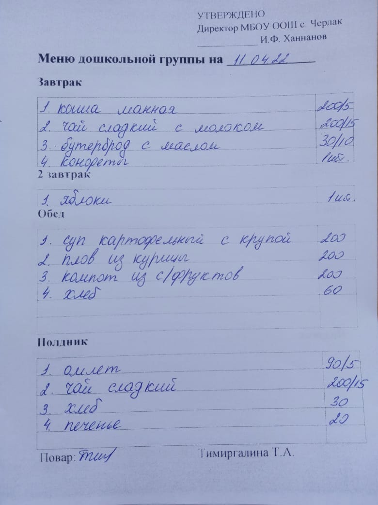 (детсад полдник)