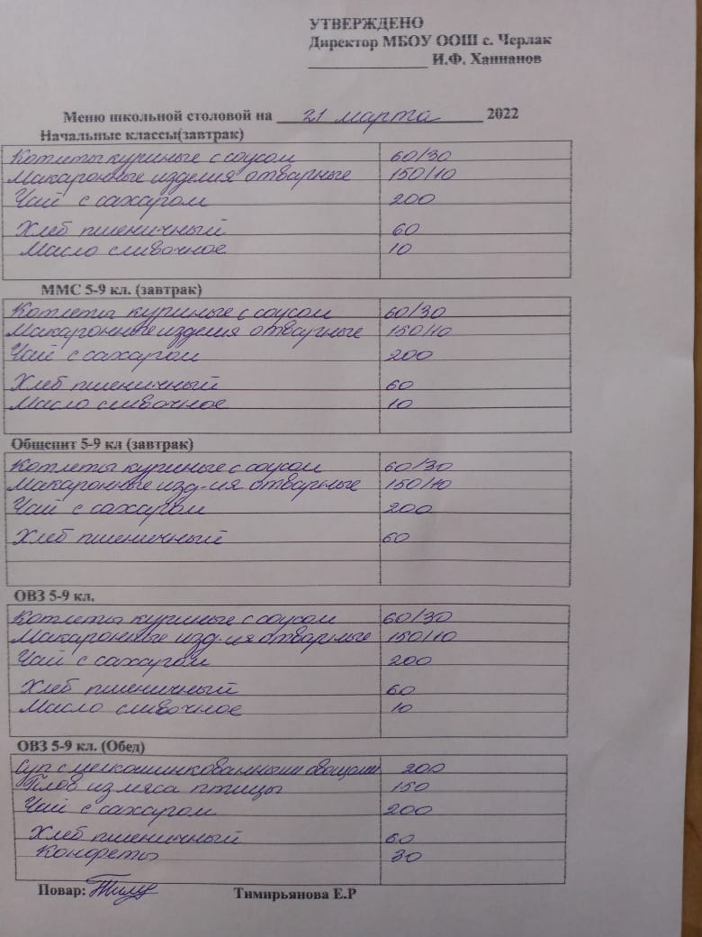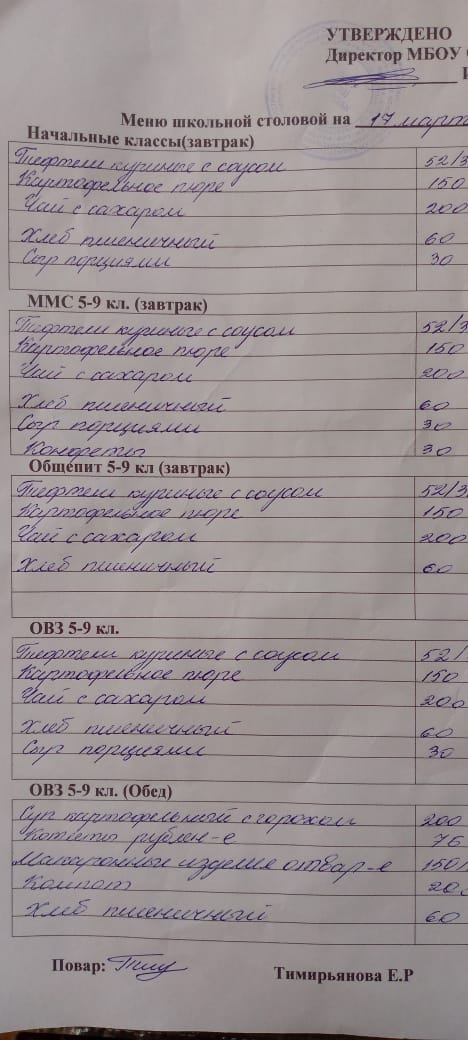 Информация о питании в школе