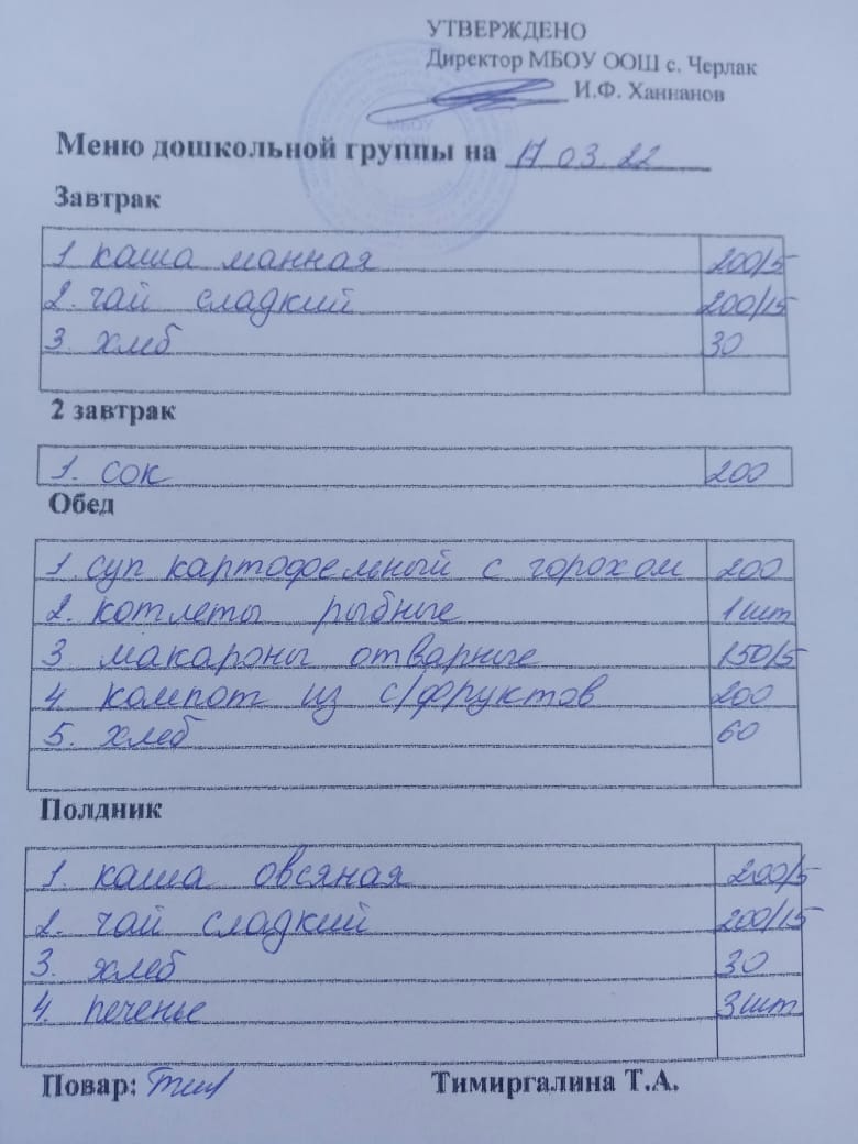 (детсад полдник)