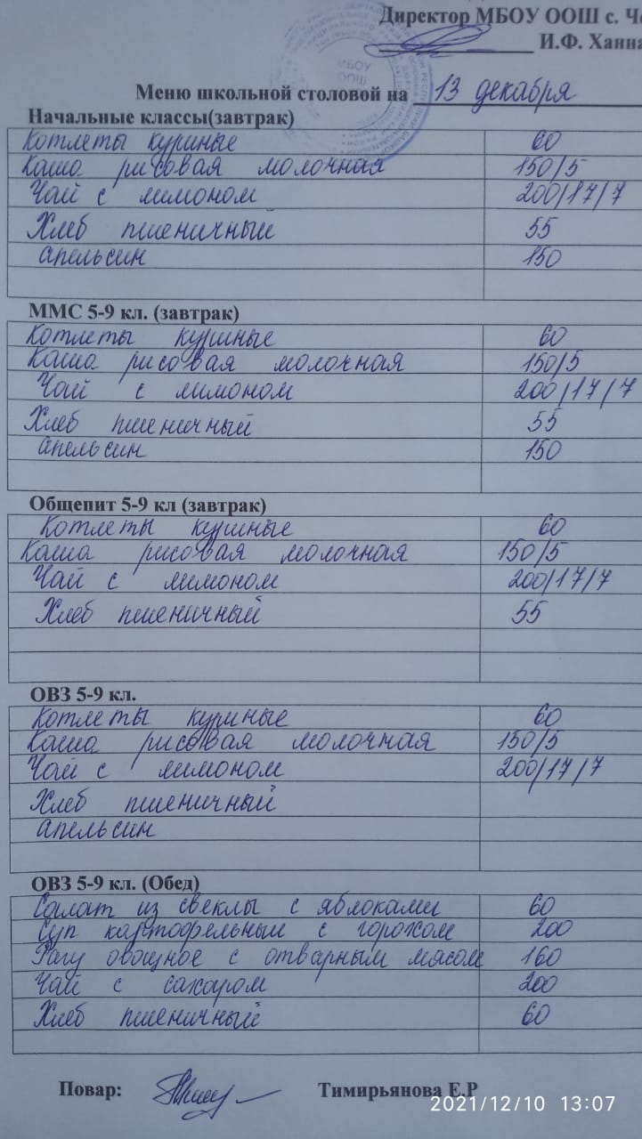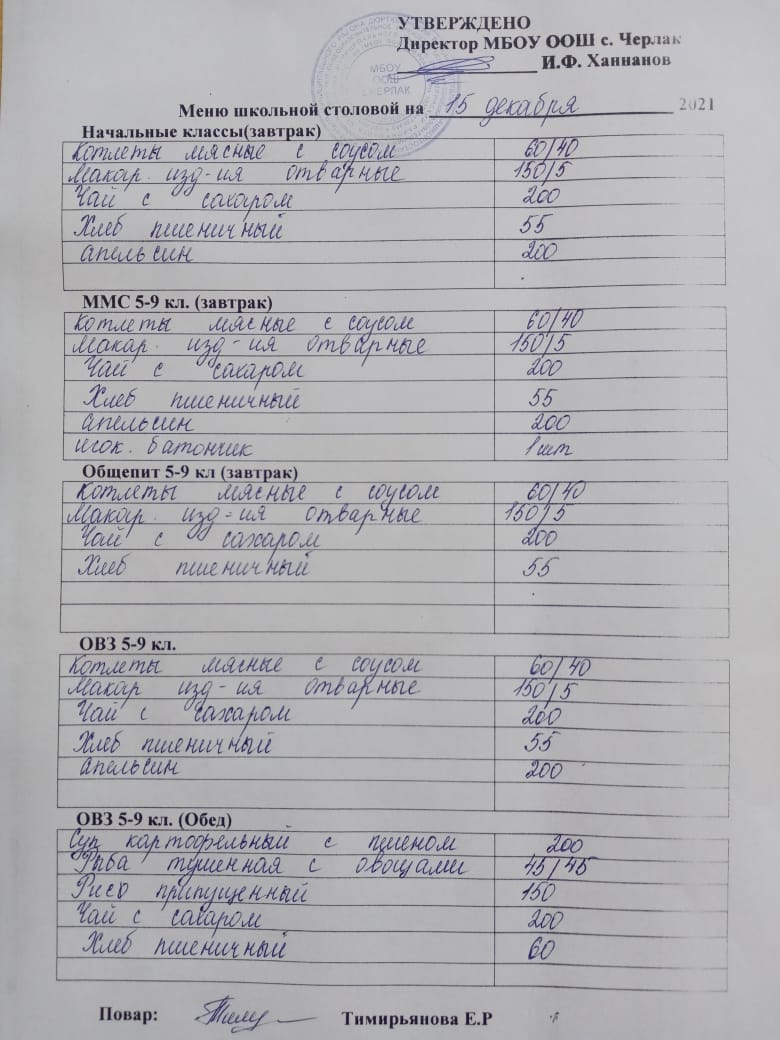 Информация о питании в школе