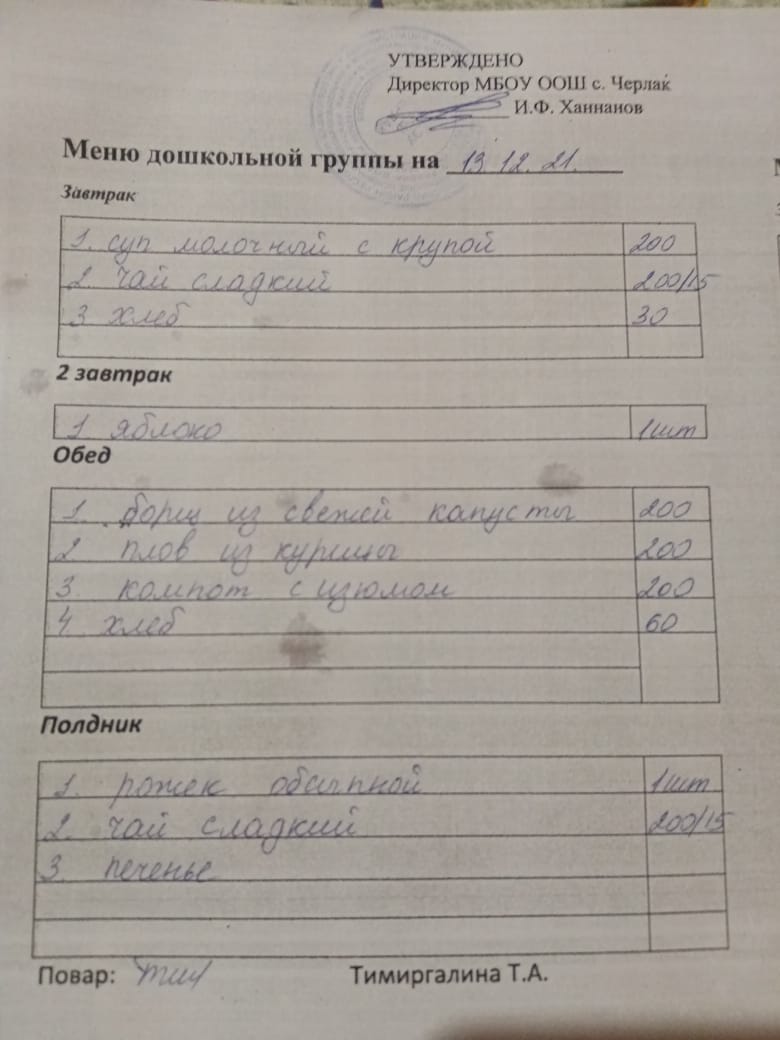 (детсад полдник)