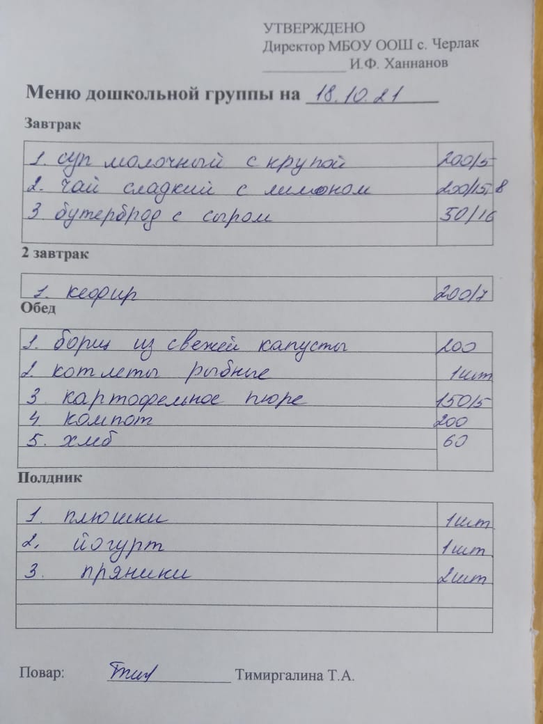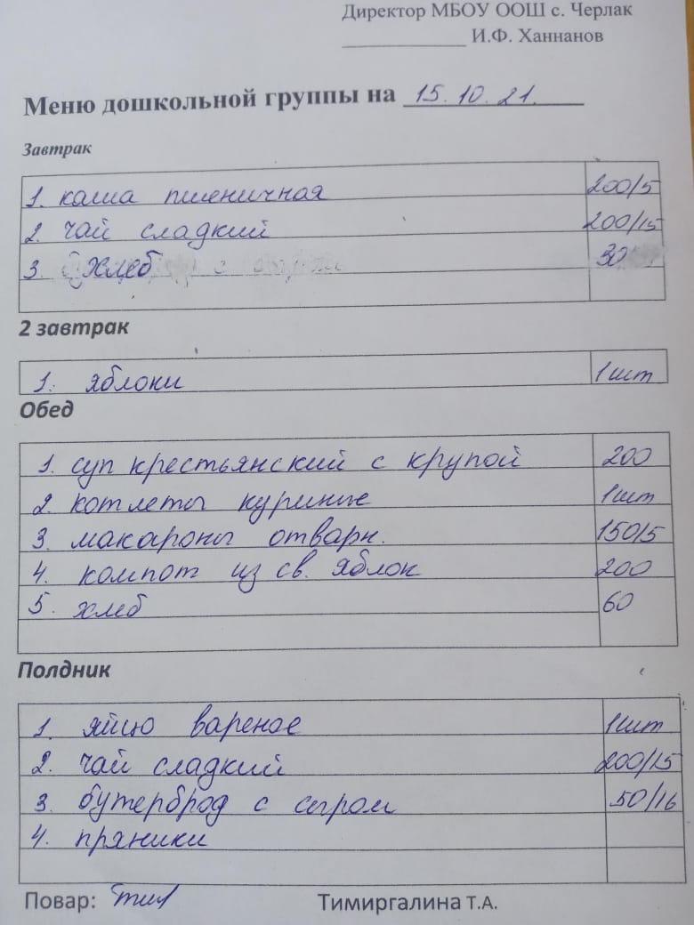 (детсад полдник)