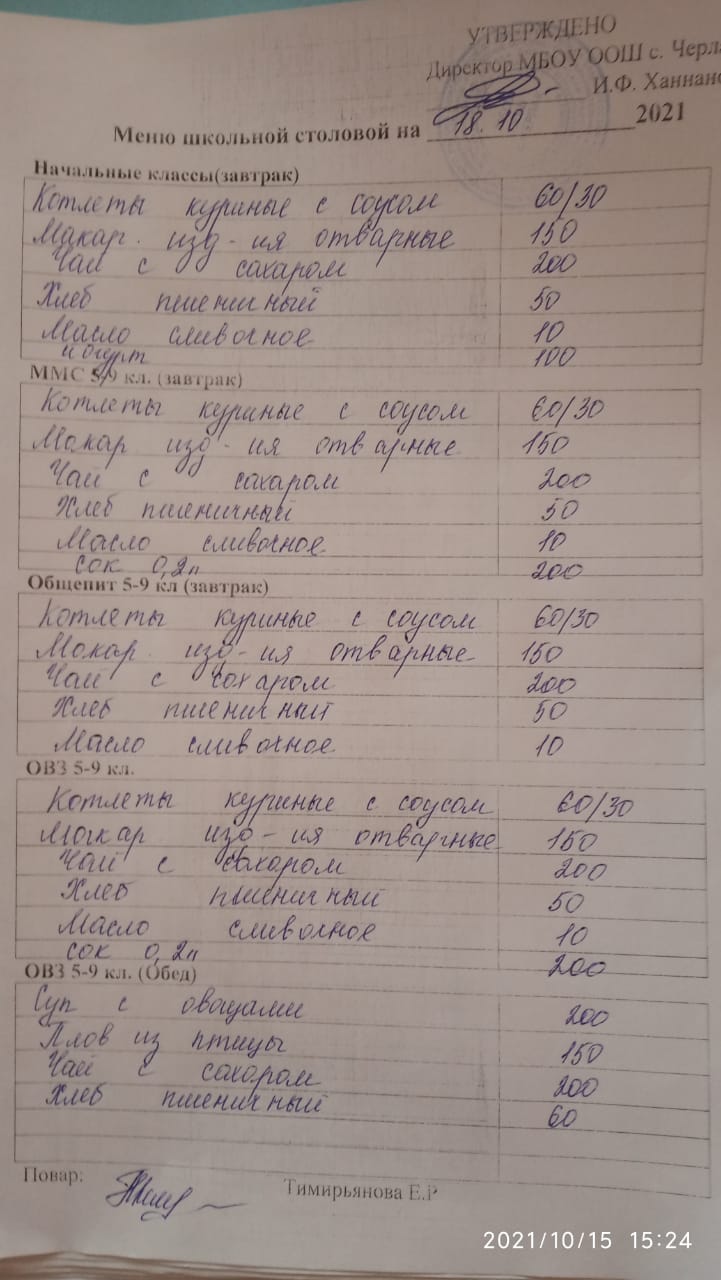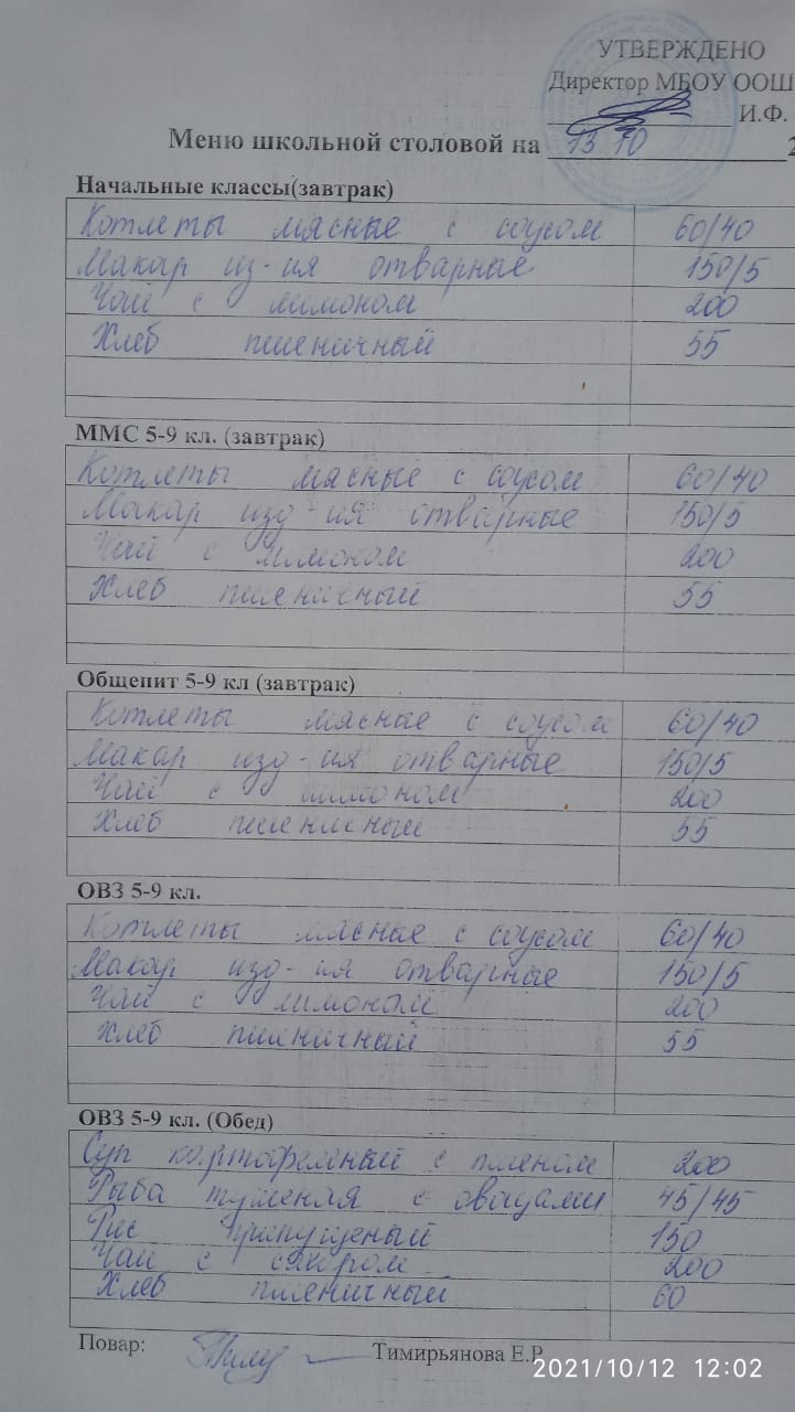 Информация о питании в школе