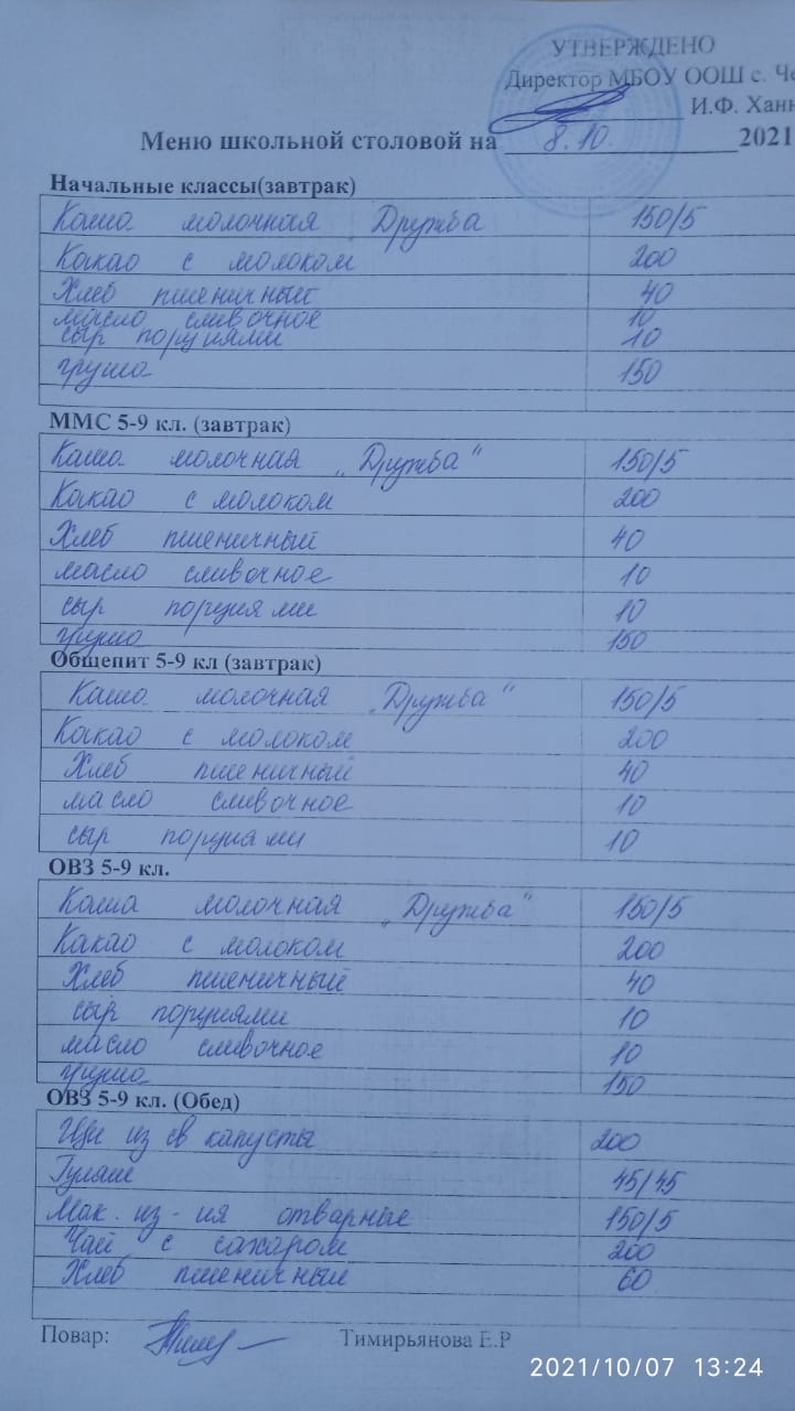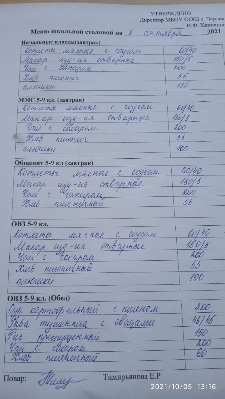 Информация о питании в школе
