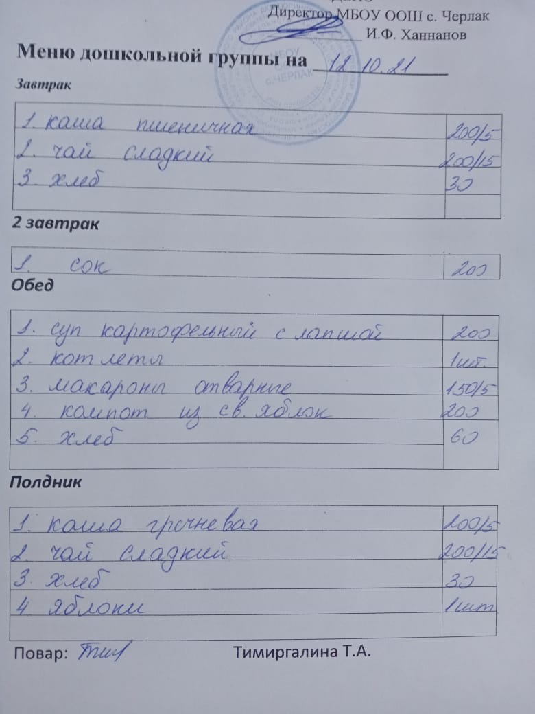 (детсад полдник)