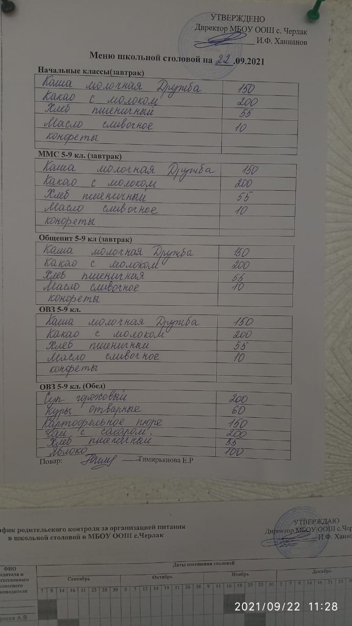 Информация о питании в школе